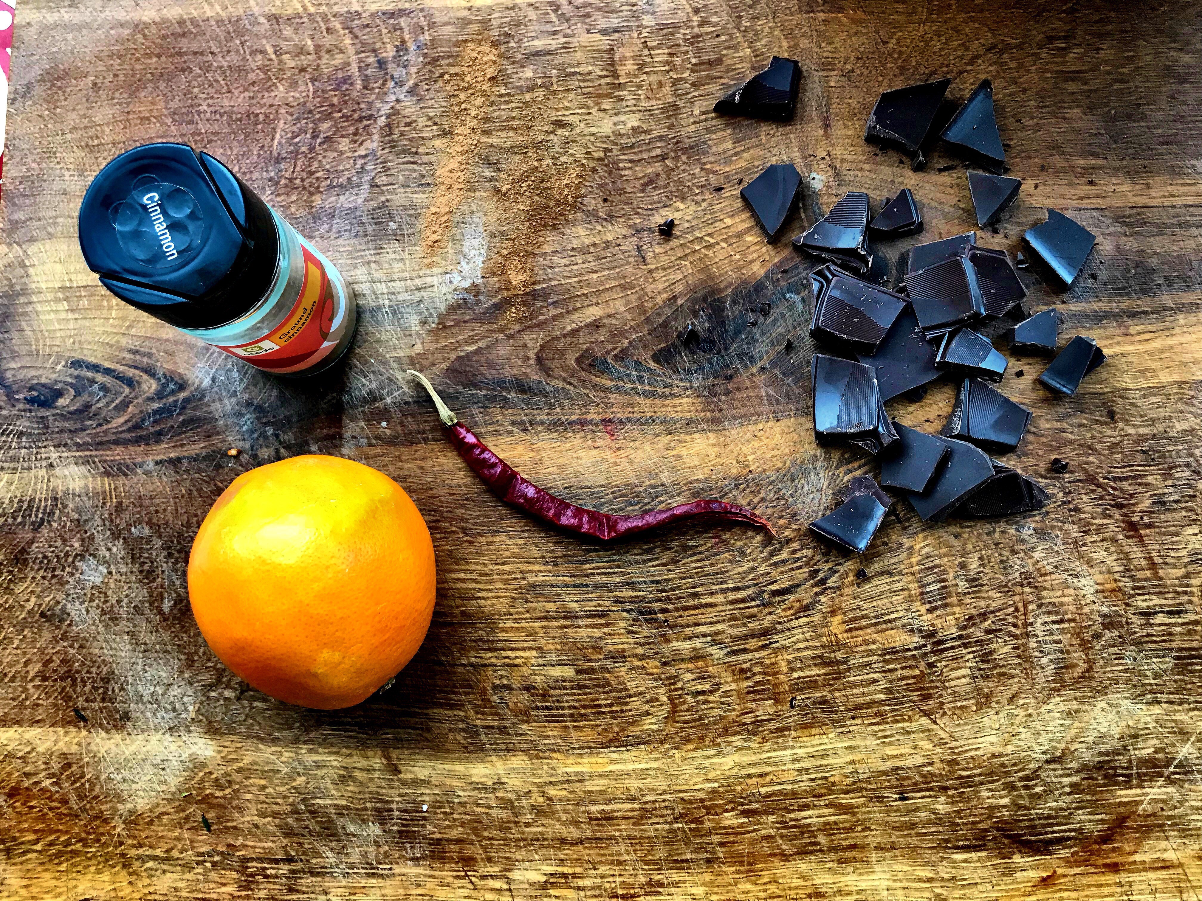 Break the chocolate into small chunks and put into a small saucepan with the coconut oil. Zest the orange into the pan, then chop it in half and squeeze in a couple of tablespoons of the juice. Add the vanilla, dried chilli, cinnamon and sea salt to the pan. Gently heat, stirring regularly, until the coconut oil and chocolate have completely melted. Remove from the heat and allow to sit and cool for half an hour, leaving the chilli in to infuse. Then remove the chilli and put the pan into the fridge to allow the mixture to solidify.