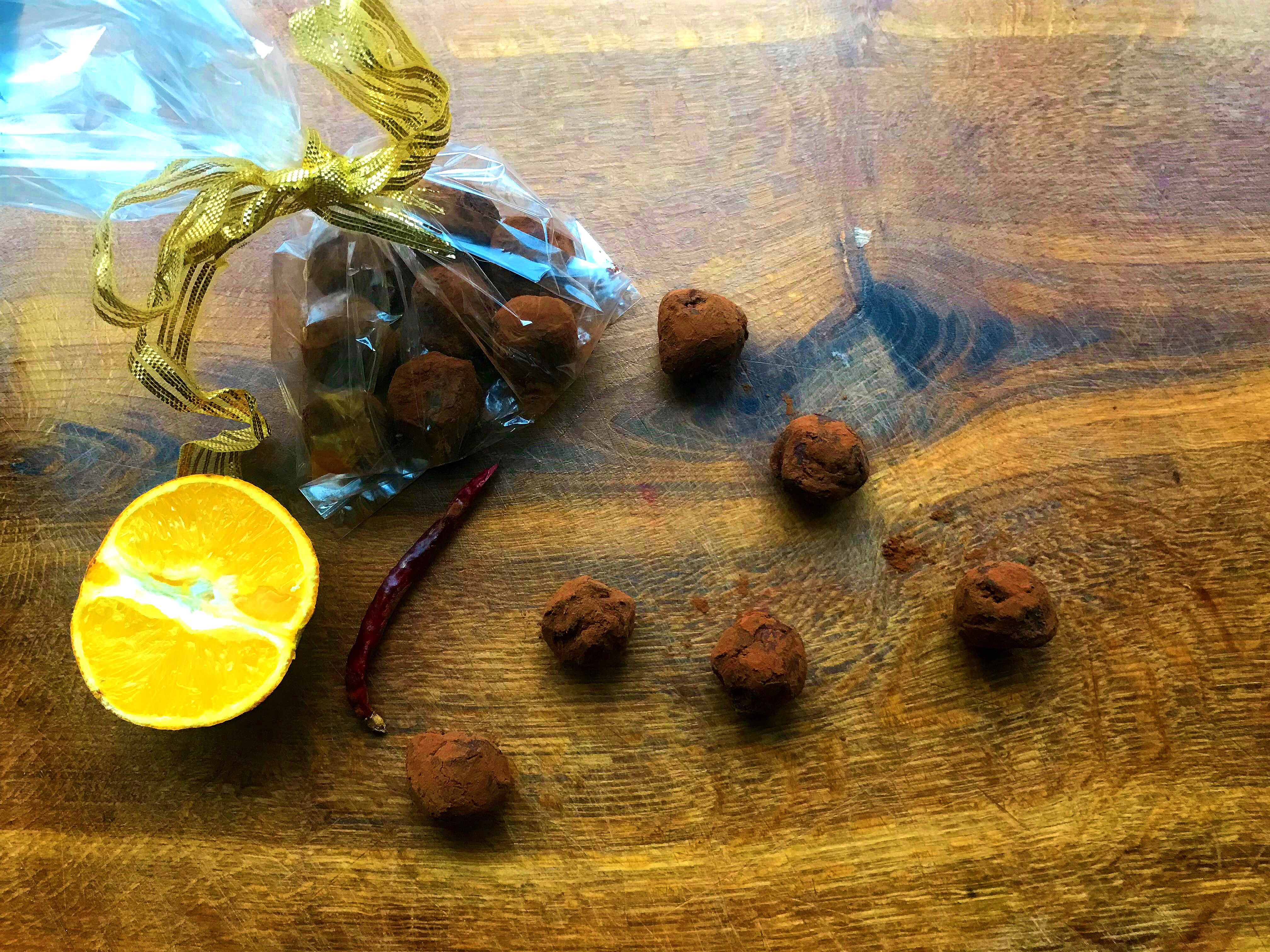 You can make these your own by omitting the chilli or cinnamon, swopping in rum or brandy for the orange juice, and coating in nuts or dessicated coconut instead of cocoa powder.
