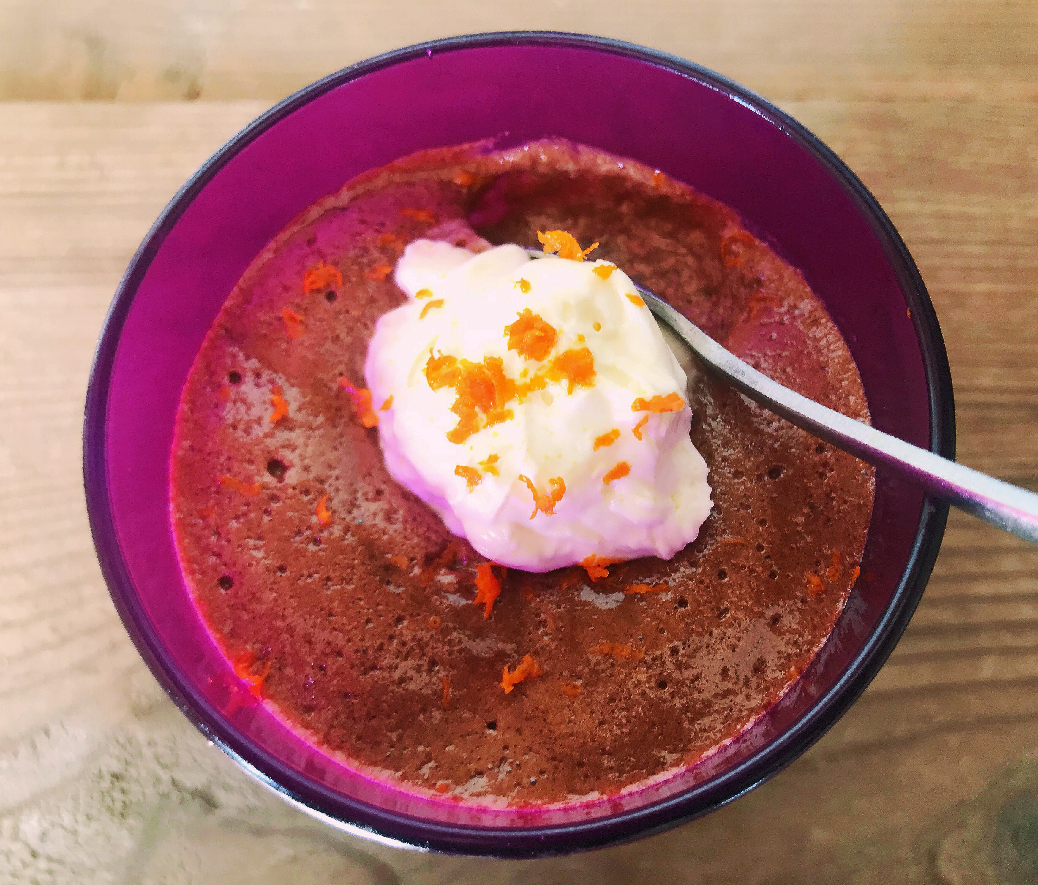 Pour the mousse into four small glasses and put in the fridge for an hour to set. (They will keep happily in the fridge for a couple of days)