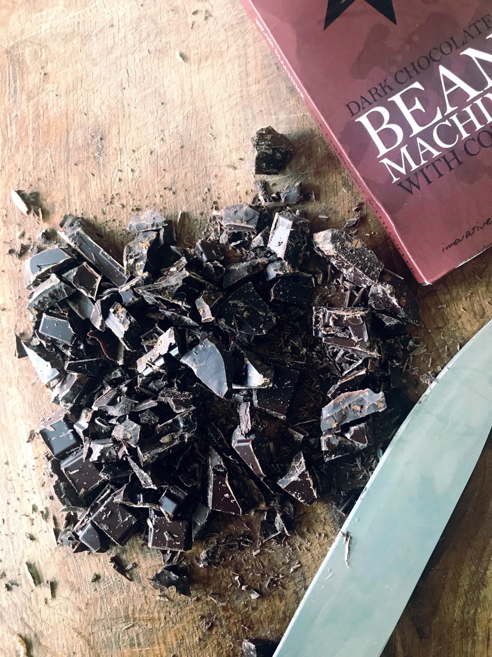 100g dark chocolate with coffee – chopped (I used Montezumas Bean Machine)