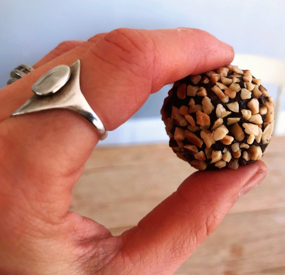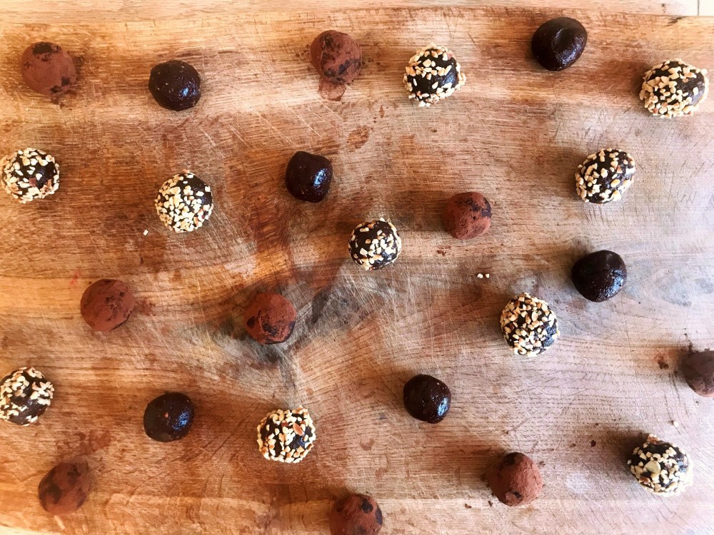 Roll into small balls and serve as they are or roll in a little more cocoa or chopped nuts.