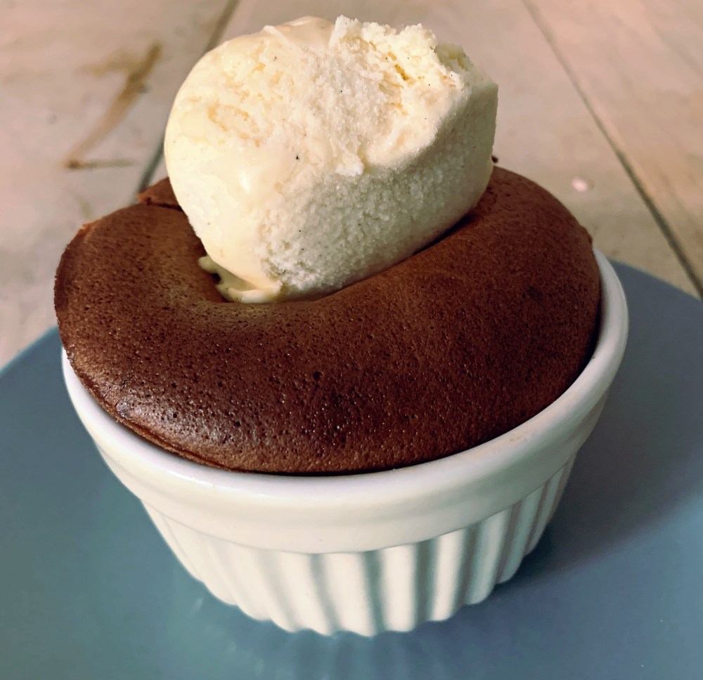 When the oven is hot, place the ramekins on the tray and bake for 15 minutes from chilled, 17 minutes from frozen or 13 minutes if they haven’t been chilled.