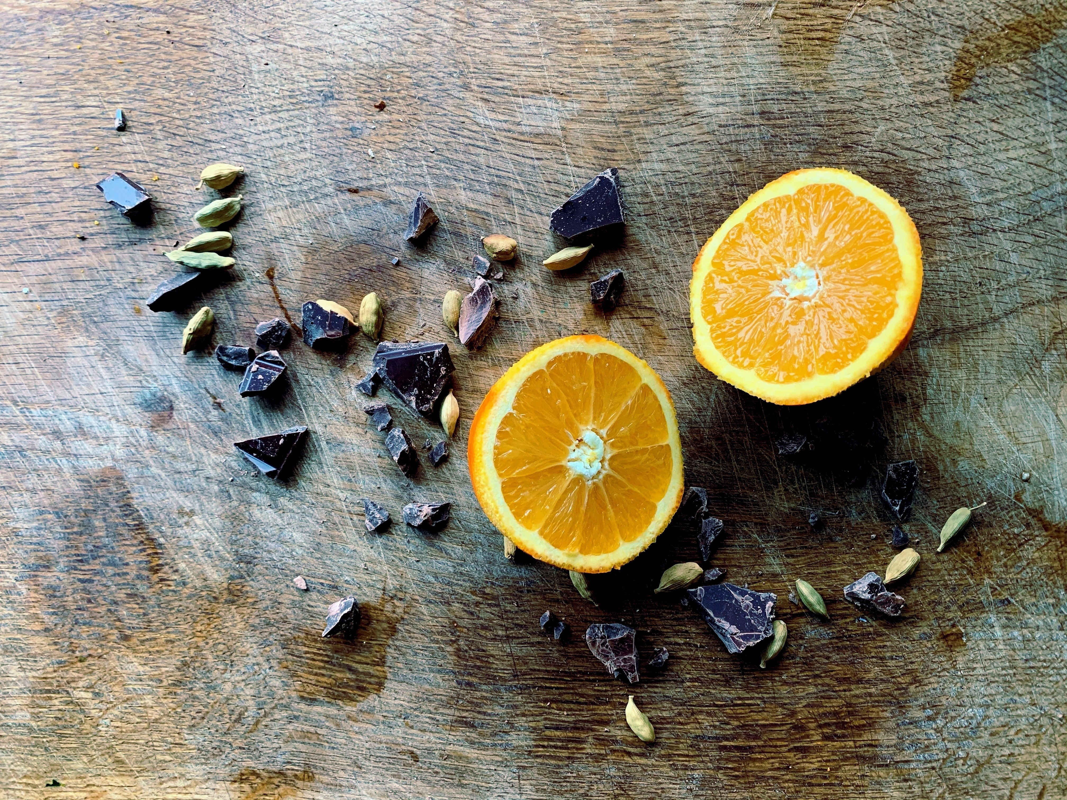 This loaf cake feels very festive… chocolate, orange and bit of spice. It’d make a nice gift for a friend or neighbour and a delicious addition to a Christmas tea or coffee. You’ll need a pestle and mortar to smash the cardamom and crush the seeds. Easily dairy-free if you use coconut oil and dairy free dark chocolate.