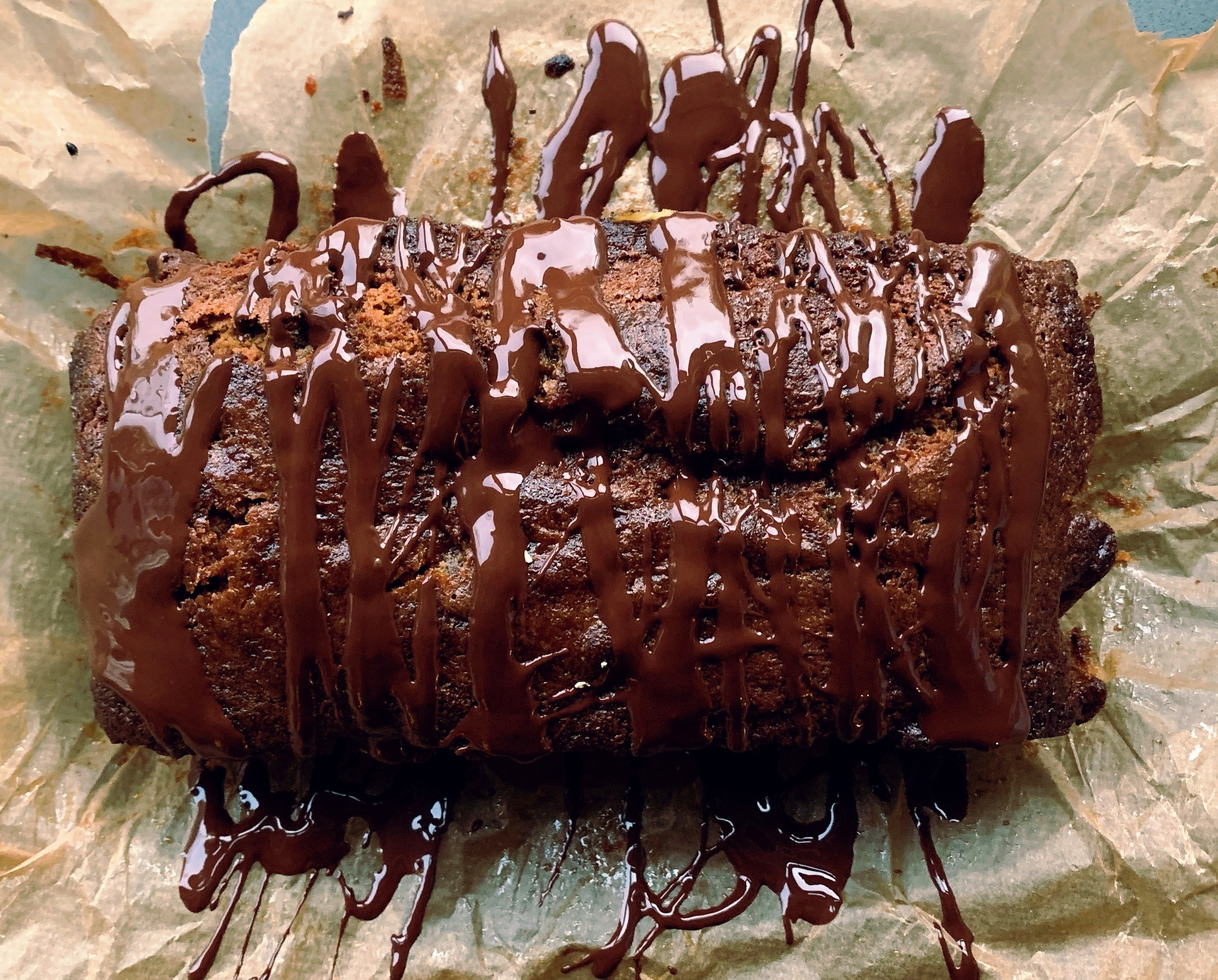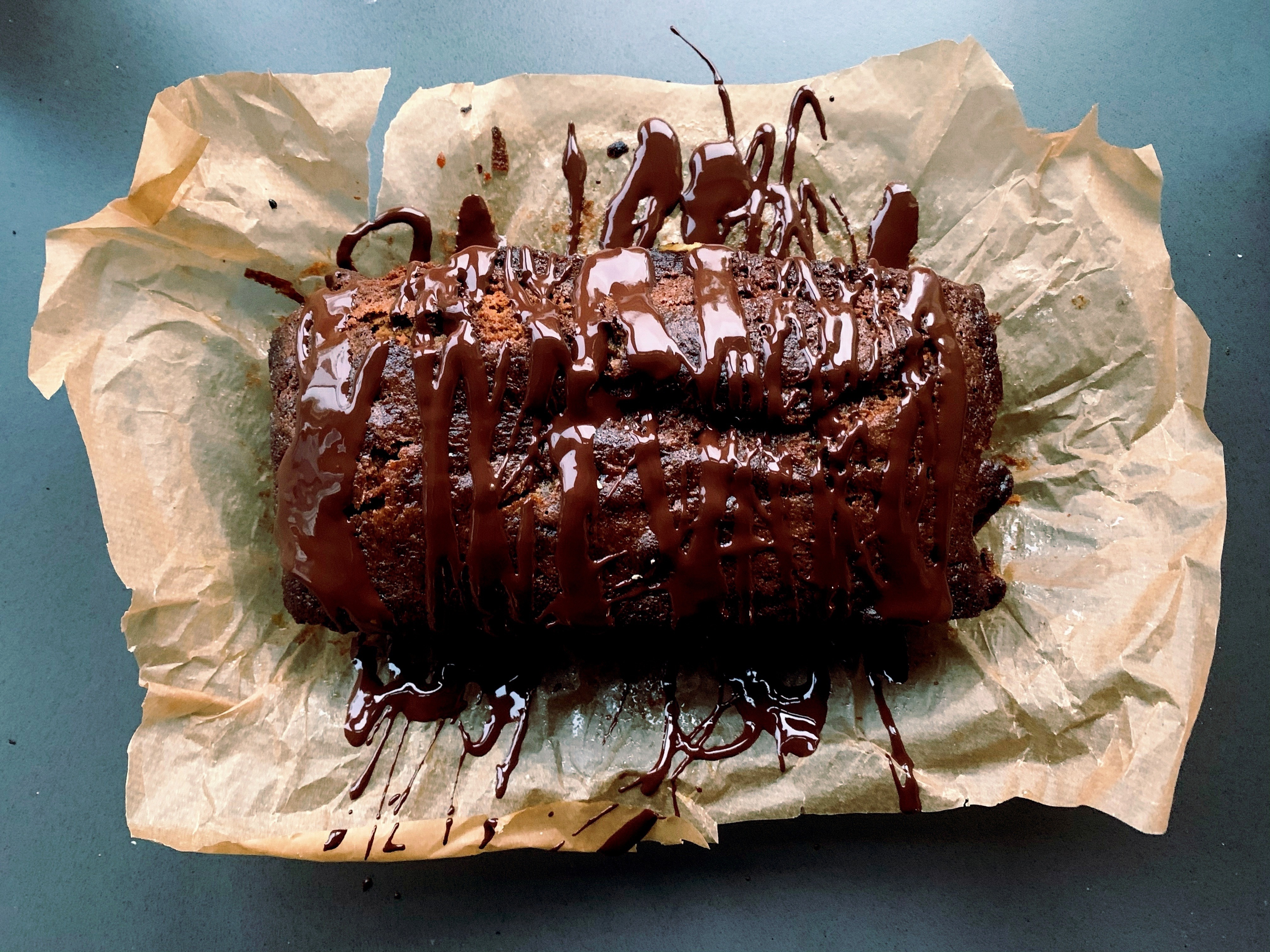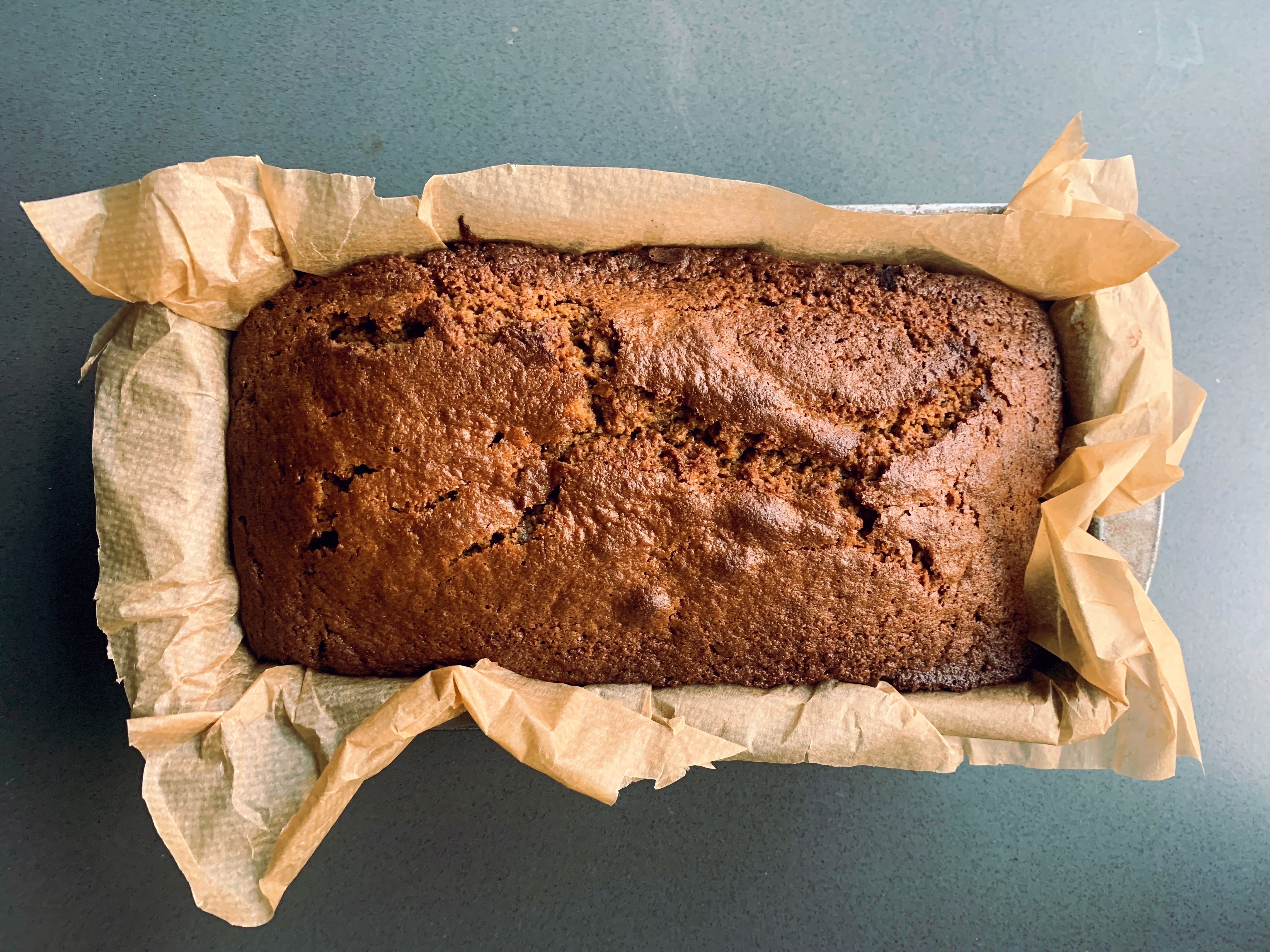 Spoon the mix into the prepared loaf tin and bake for 45-50 minutes until a skewer comes out clean. (Check and cover with foil at 30mins if it’s beginning to brown too much.)
