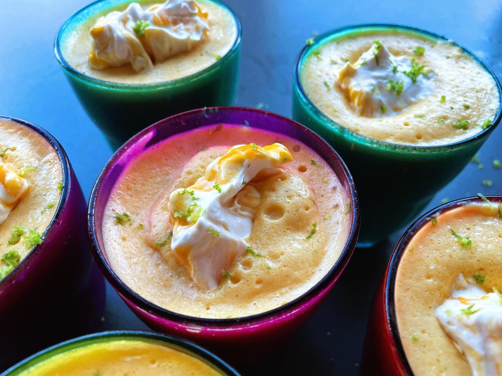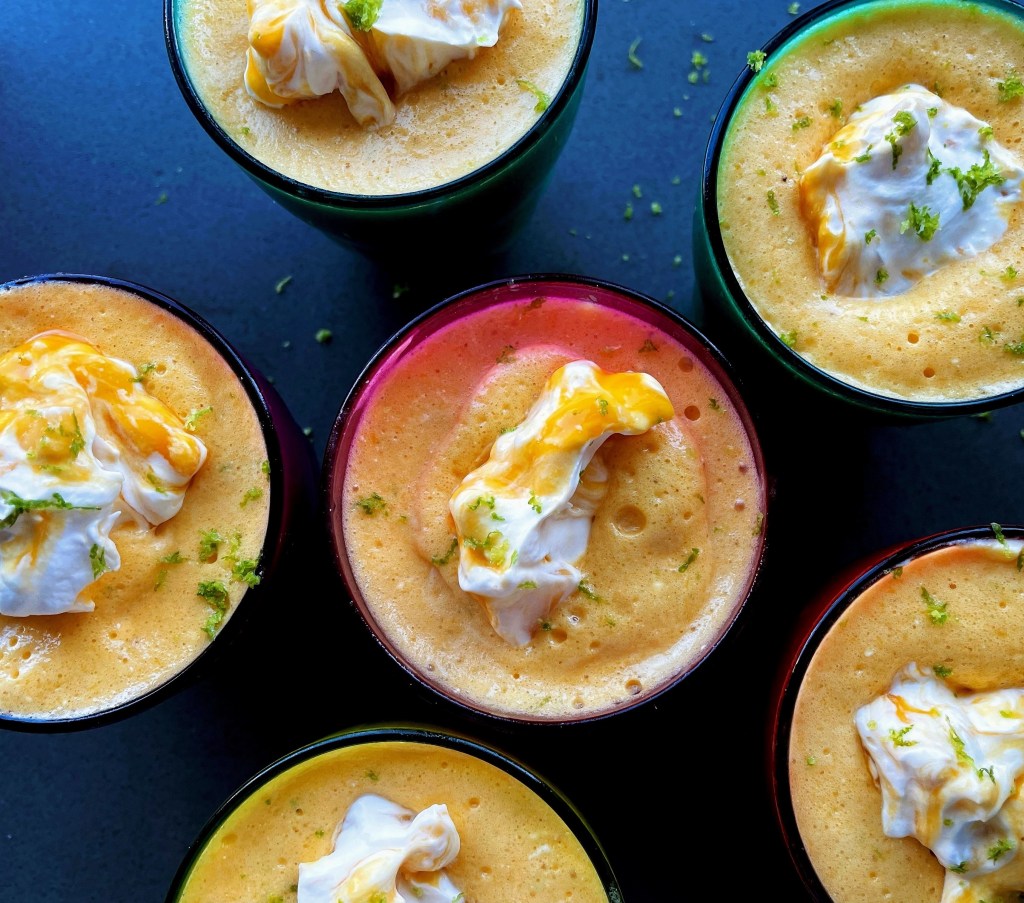 Top each mousse with a dollop of the mango cream and grate over a little more lime zest and return to the fridge until ready to serve.